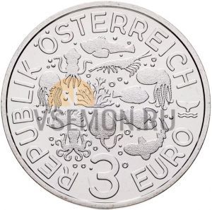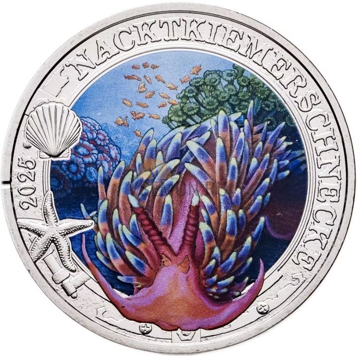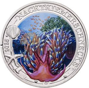 Австрия 3 евро 2025 "Светящаяся морская жизнь - Голожаберный моллюск"