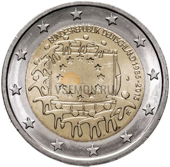 Германия 2 евро 2015 30 лет Флагу Европы двор J (VF-XF)