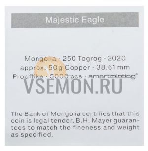 Монголия 250 тугриков 2020 Мистический орел Proof в капсуле с сертификатом