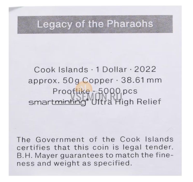 | Название на русском | Острова Кука 1 доллар 2022 (Наследие фараонов) |