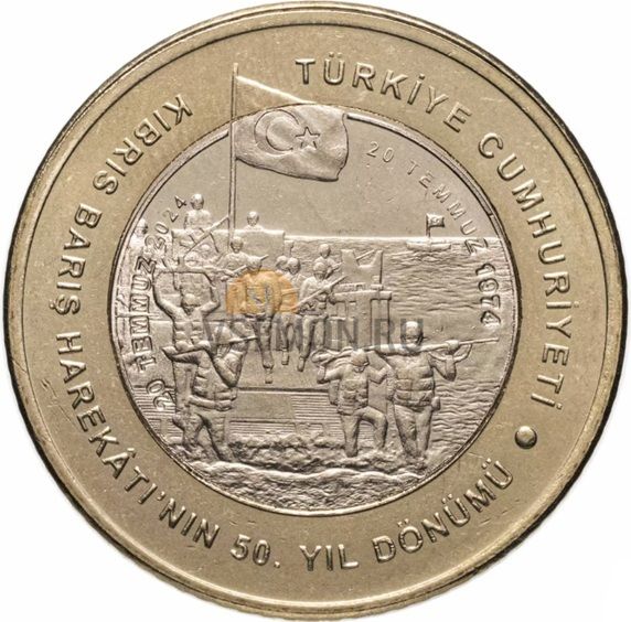 | Название на русском | Турция 5 лир 2024 (50-летие мирной операции на Кипре) |
