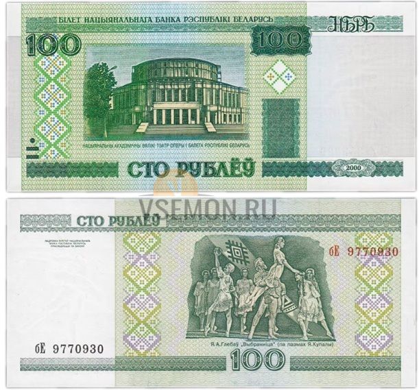 Беларусь 100 рублей 2000 серия бЕ