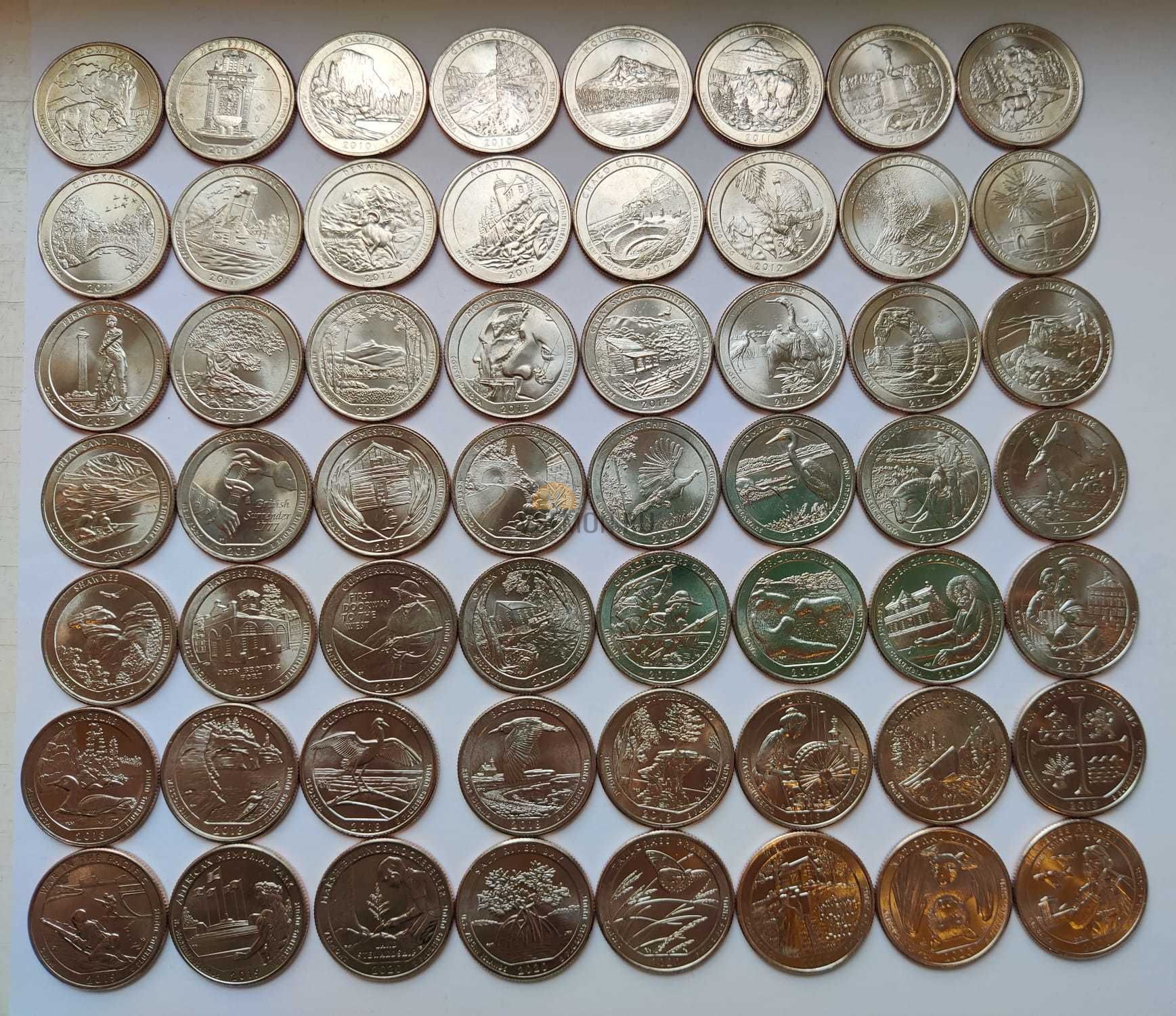 Набор квоттеры США Национальные парки 56 шт двор D