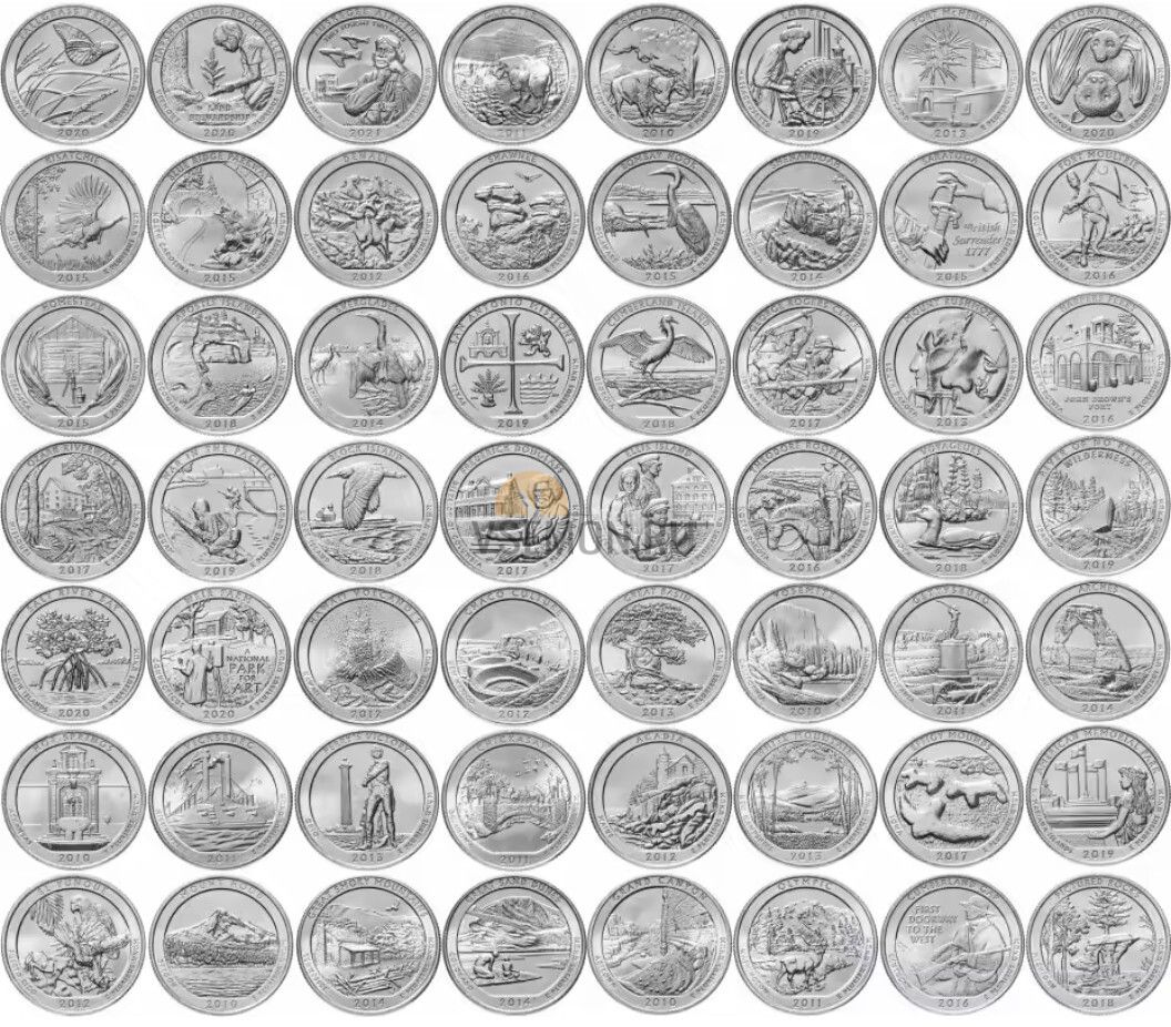 Набор квоттеры США Национальные парки 56 шт двор P