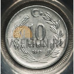 Турция 10 лира 1982 Полумесяц открывается справа; Мустафа Кемаль Ататюрк аUNC