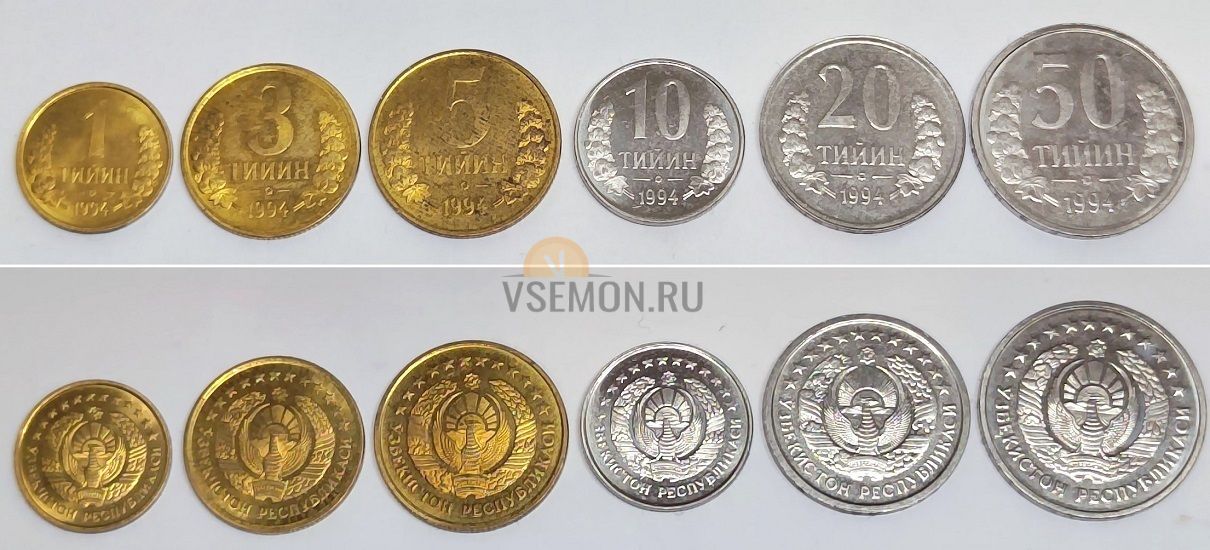 В данный набор входят 6 монет 1994 года Узбекистан, номиналом 1, 3, 5, 10, 20 и 50 тийин.