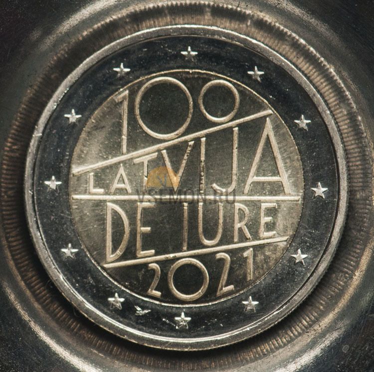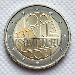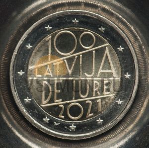 Латвия 2 евро 2021 (100-летие признания Латвии де-юре)
