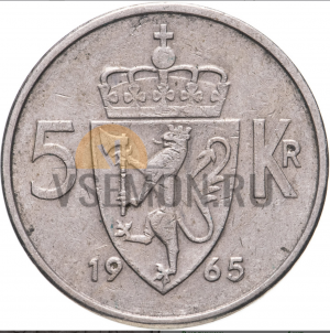 Норвегия 5 крон 1963-1973 Король Олаф V (VF-AU)