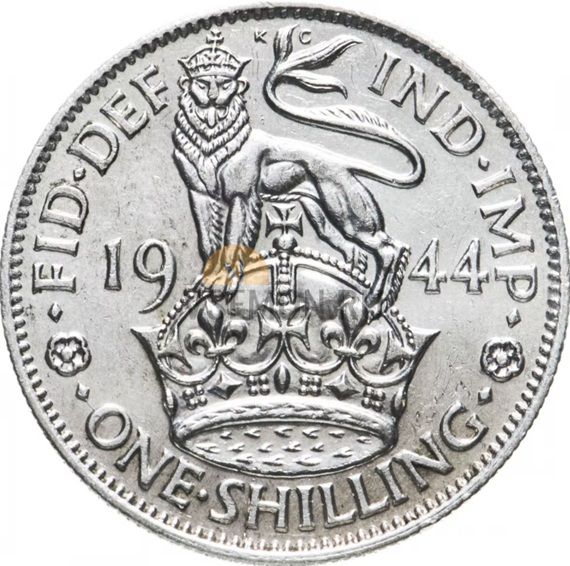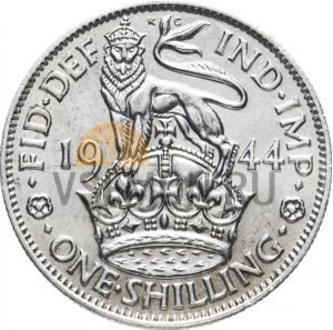 Великобритания 1 шиллинг 1944 Георг VI; лев стоит (серебро VF-XF)